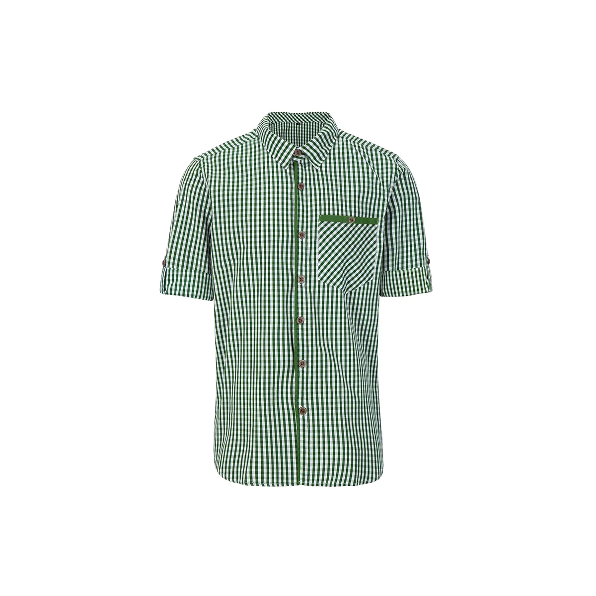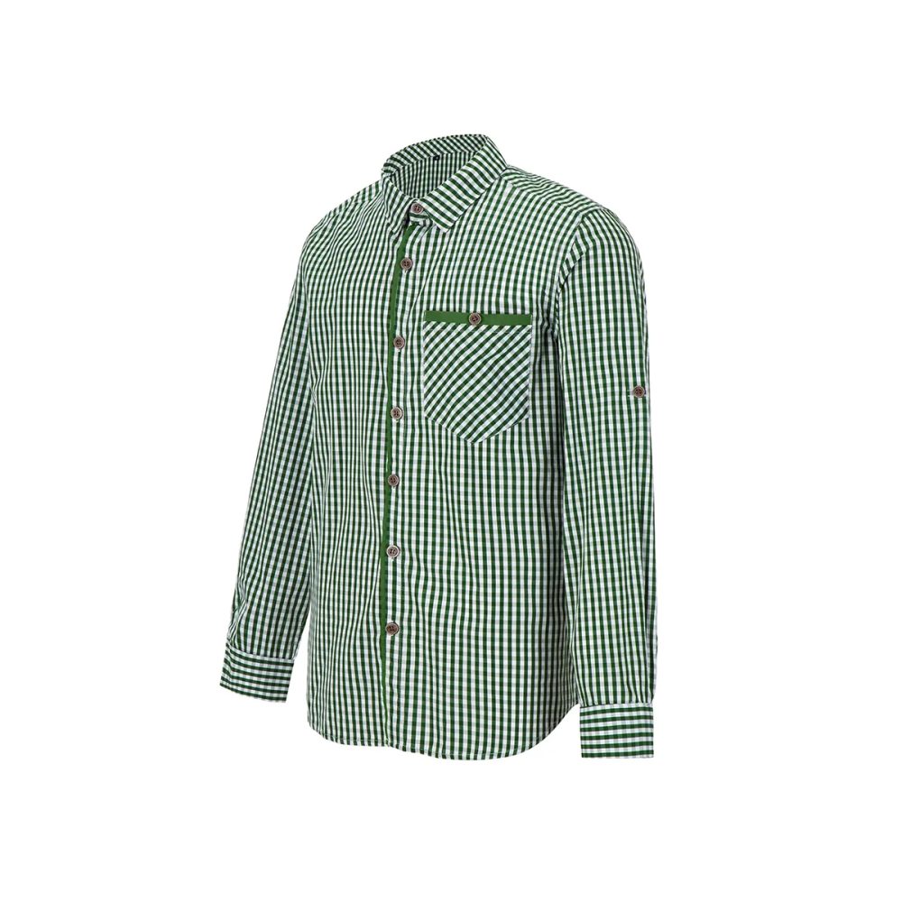 ✔ Design: Green checkered pattern on shirt, placket with green strip of fabric and metal buttons, fully traditional